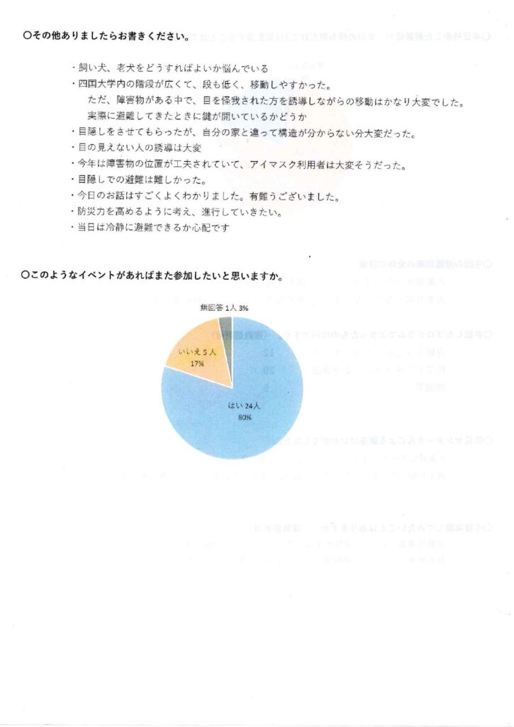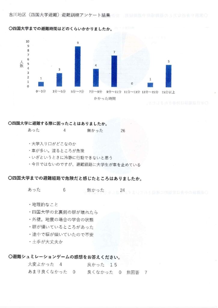 古川地区(四国大学避難)アンケート結果について